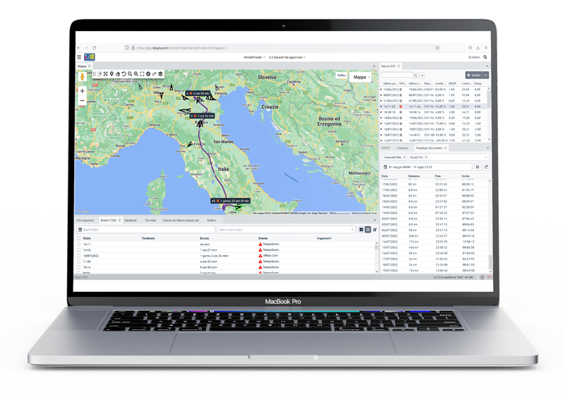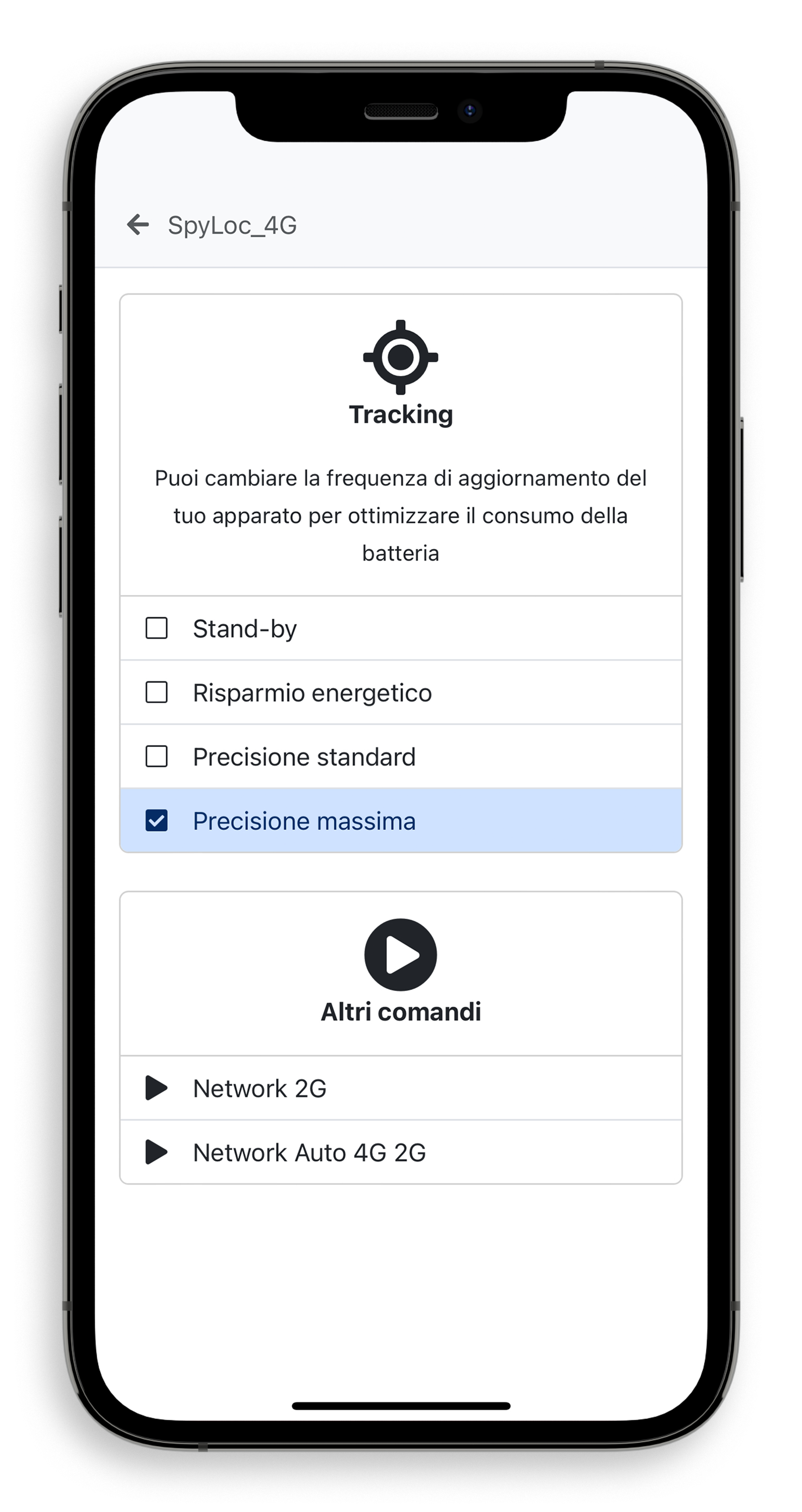 Potrai gestire Geo Fence, modalità di utilizzo batteria, lettura di stato ed accedere alla mappa in real time.