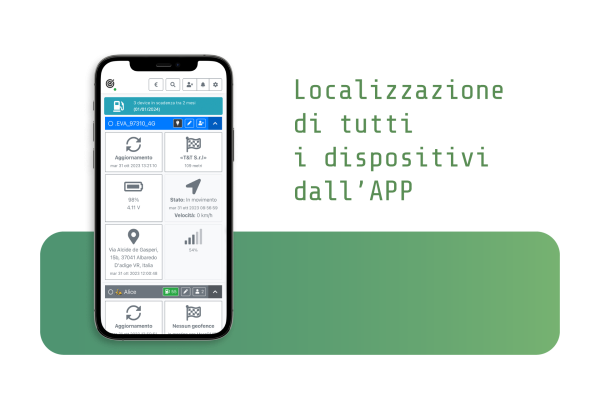 I localizzatori sono gestiti tramite applicazione e software dedicati, che consentono il monitoraggio delle posizioni GPS e dello stato dei dispositivi in tempo reale, comodamente dal tuo dispositivo.